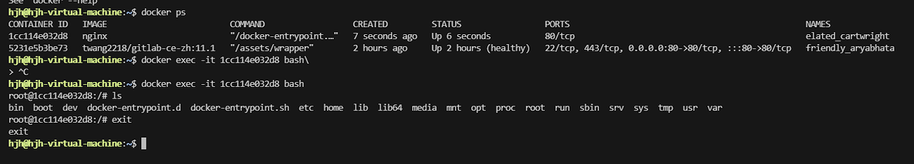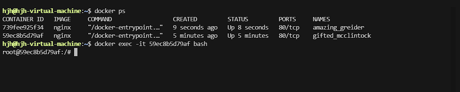 这个命令是进入正在运行的容器, -it参数是可交互命令行,bash是所使用的命令行方式。