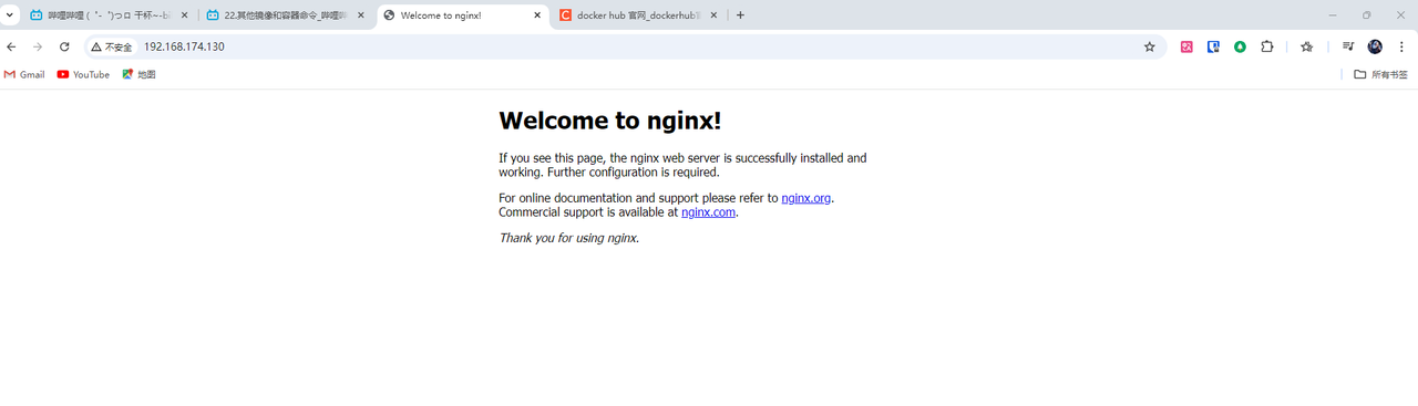 - 后台运行nginx容器,发布一个最简单的静态页面到Nginx,让我们能够通过浏览器去访问这个静态页面