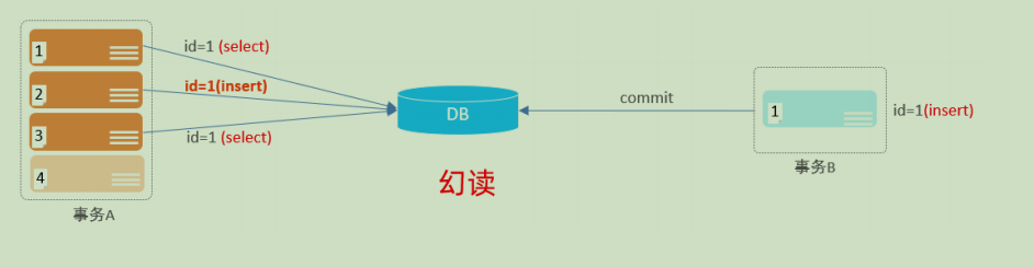 3) 幻读:一个事务读取数据时,另外一个事务进行更新,导致第一个事务读取到了没有更新的数据