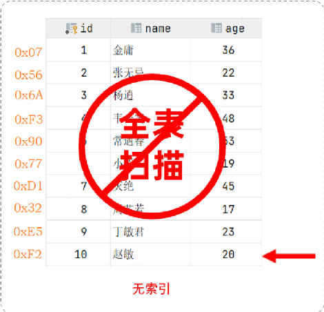 在有索引时我们可以根据这个表建立索引,一般索引都是B+tree,然后会根据age进行查找