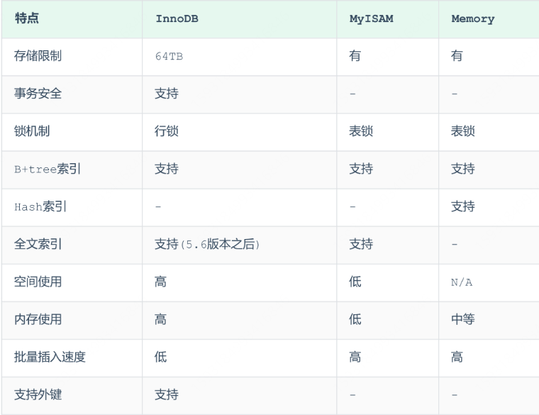 | R-tree(空间索引) | 空间索引是MyISAM引擎的一个特殊索引类型,主要用于地理空间数据类型,通常使用较少 |