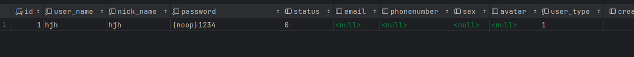 然后我们运行项目使用数据库中的用户名和密码登录就会发现无法登录,这是因为spring security自带的有密码加密 我们想要在这次测试中不使用密码就需要在数据库中的密码前面加上{noop}这个表示不进行密码加密,